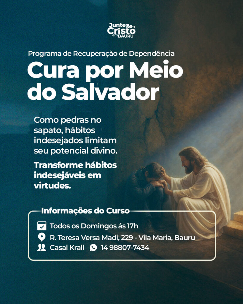 Você sente que certos hábitos estão limitando o seu potencial divino, como pedras no sapato que impedem seus passos? O Programa de Recuperação de Dependência oferece um caminho de esperança e transformação através do poder curador de Jesus Cristo. Aula Presenciais.